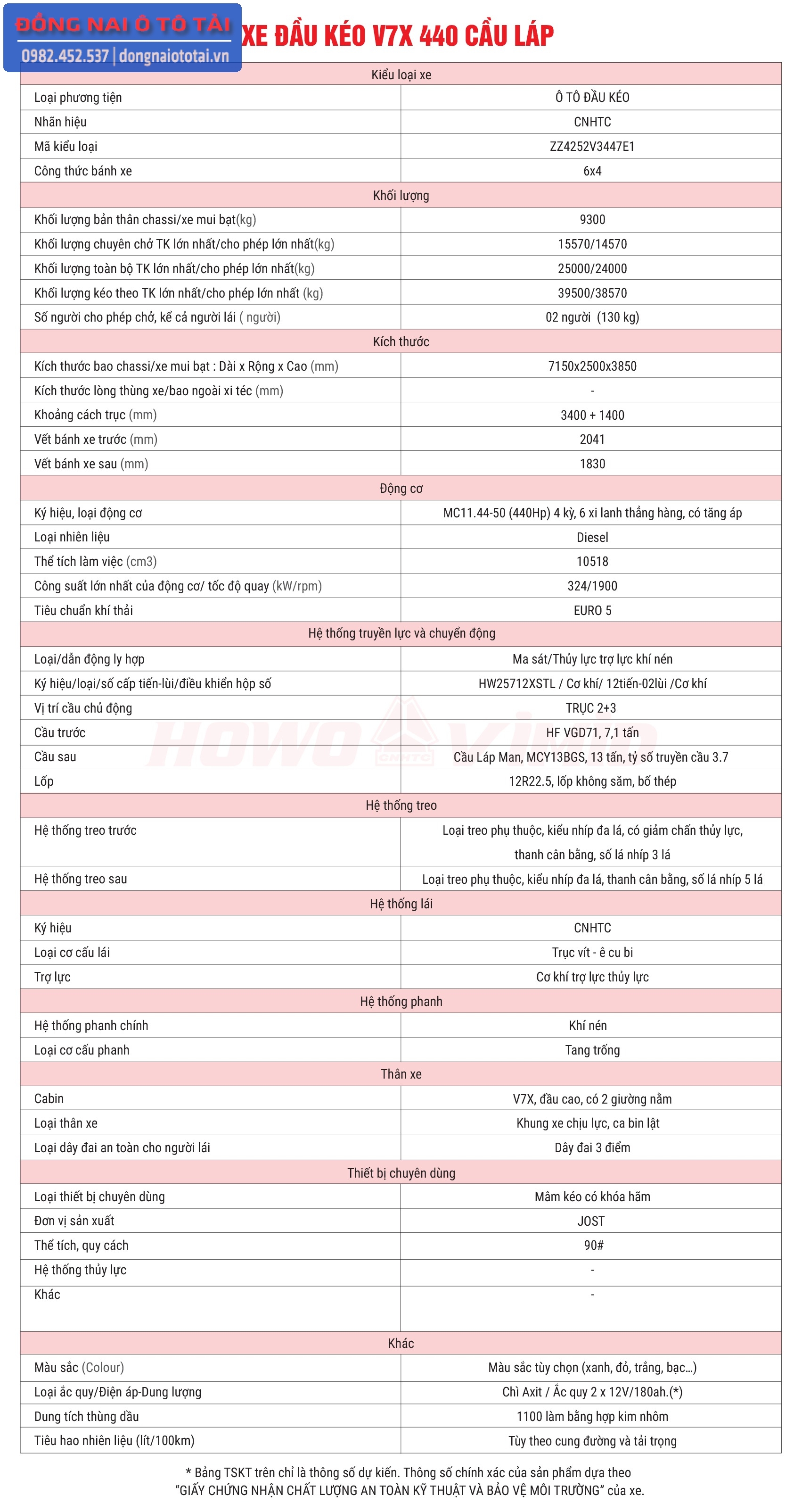 Hệ thống khác xe đầu kéo V7X 440 cầu láp