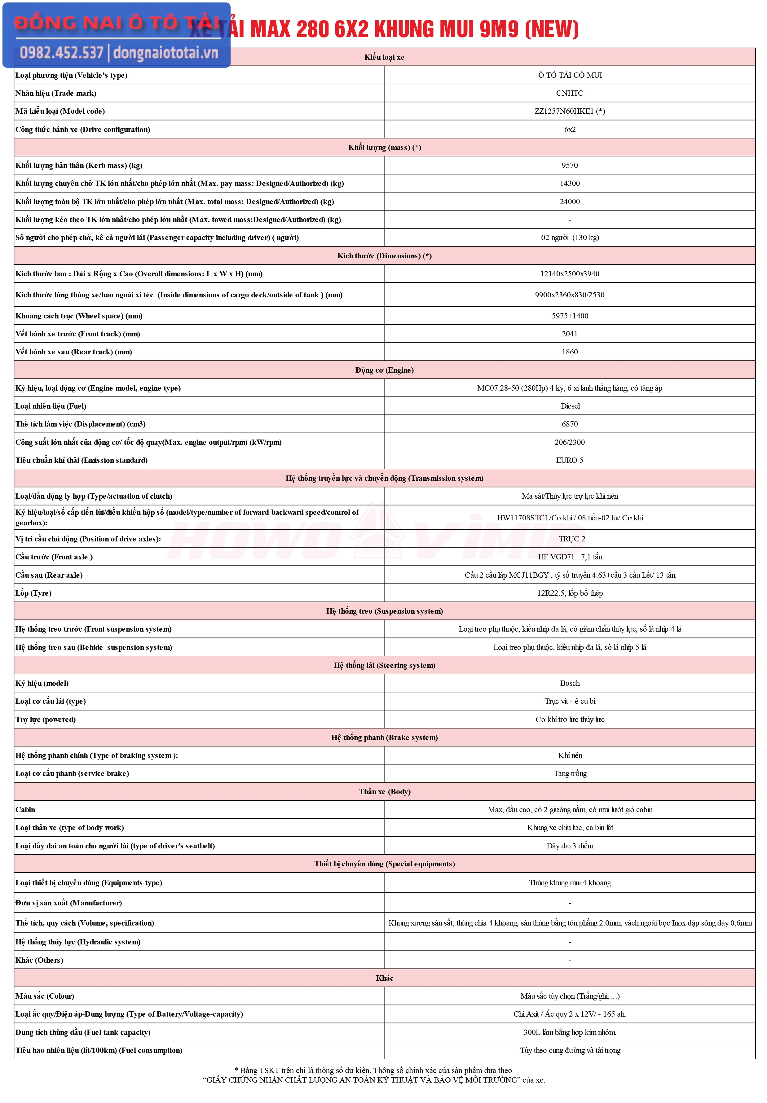 XE TẢI MAX 280 6X2 KHUNG MUI 9M9 (NEW) là lựa chọn lý tưởng cho các doanh nghiệp vận tải đang tìm kiếm một chiếc xe tải thùng khung mui bền bỉ, hiệu quả và tiết kiệm chi phí. Liên hệ ngay để được tư vấn và trải nghiệm dòng xe tải vượt trội này!