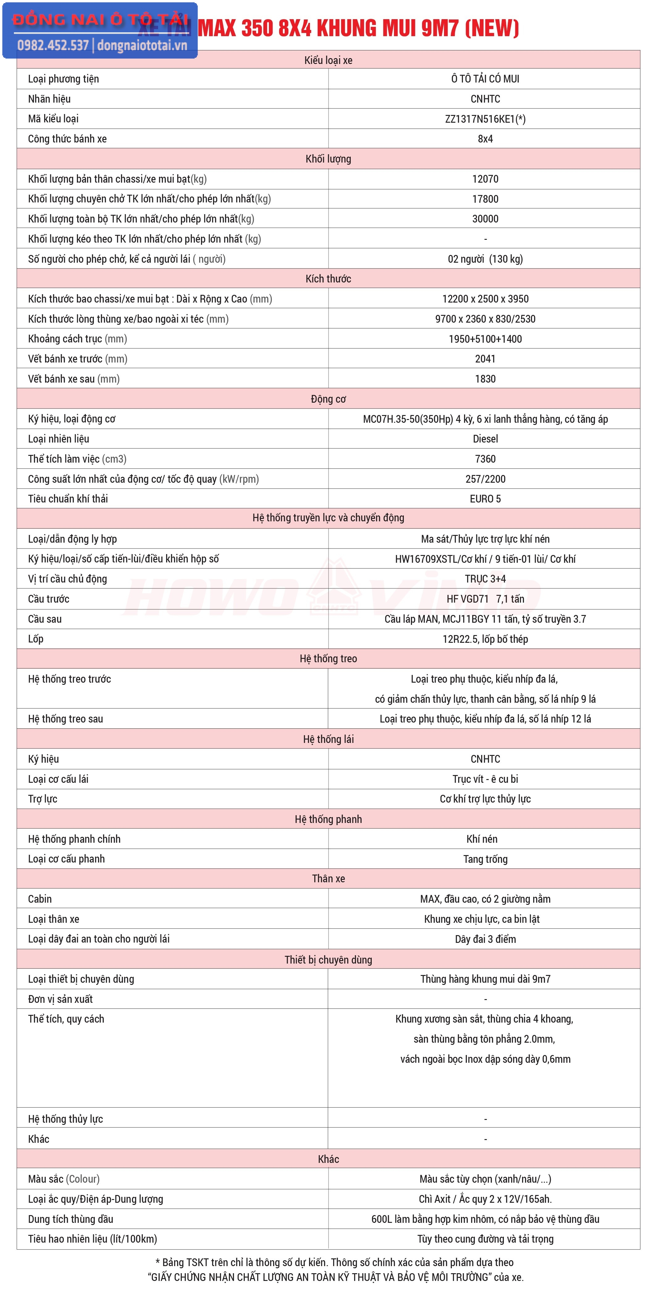 XE TẢI HOWO MAX 350 8X4 KHUNG MUI NK 9M7